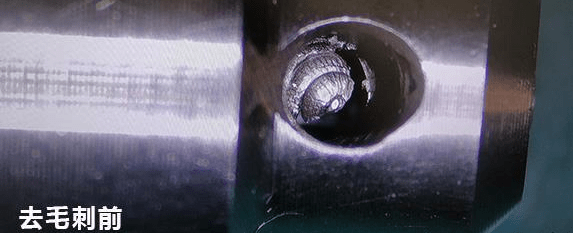 人工去毛刺顯而易見地容易劃傷內壁,容易錯過死角。但高壓水去毛刺在遇阻或限流時,沖擊力就大打折扣。而現在有一種新型的流體拋光機,就是采用水粒子磨料的水粒子去毛刺機,可以用于這種復雜內腔毛刺清理。